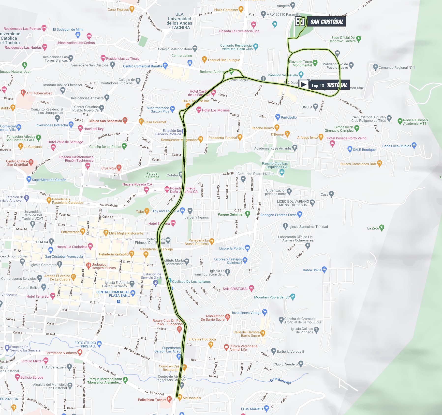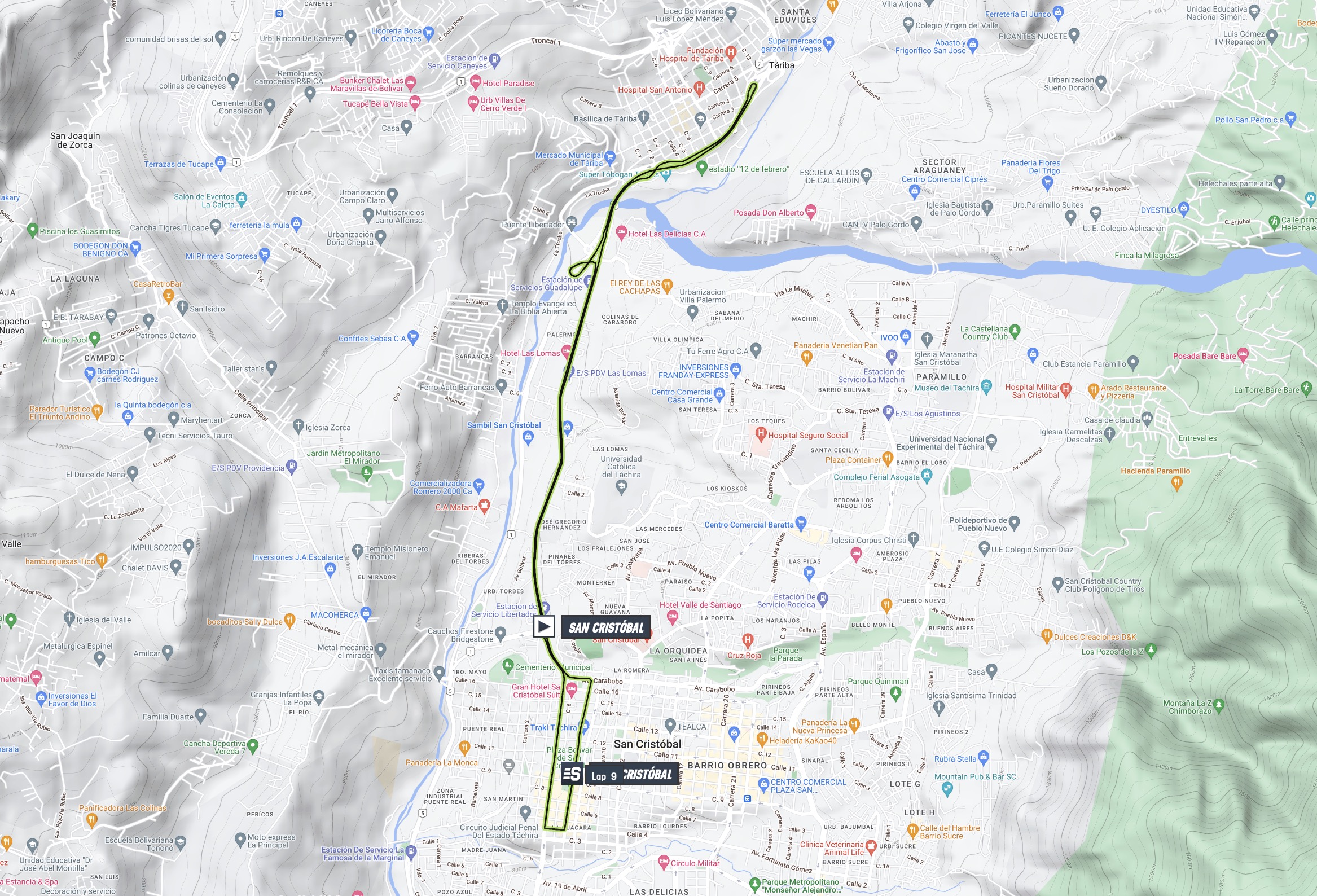 The Vuelta Al Tachira covers a distance of approximately 1,200 kilometers (746 miles). The route includes challenging climbs through the Andean mountains, as well as flat and rolling sections.